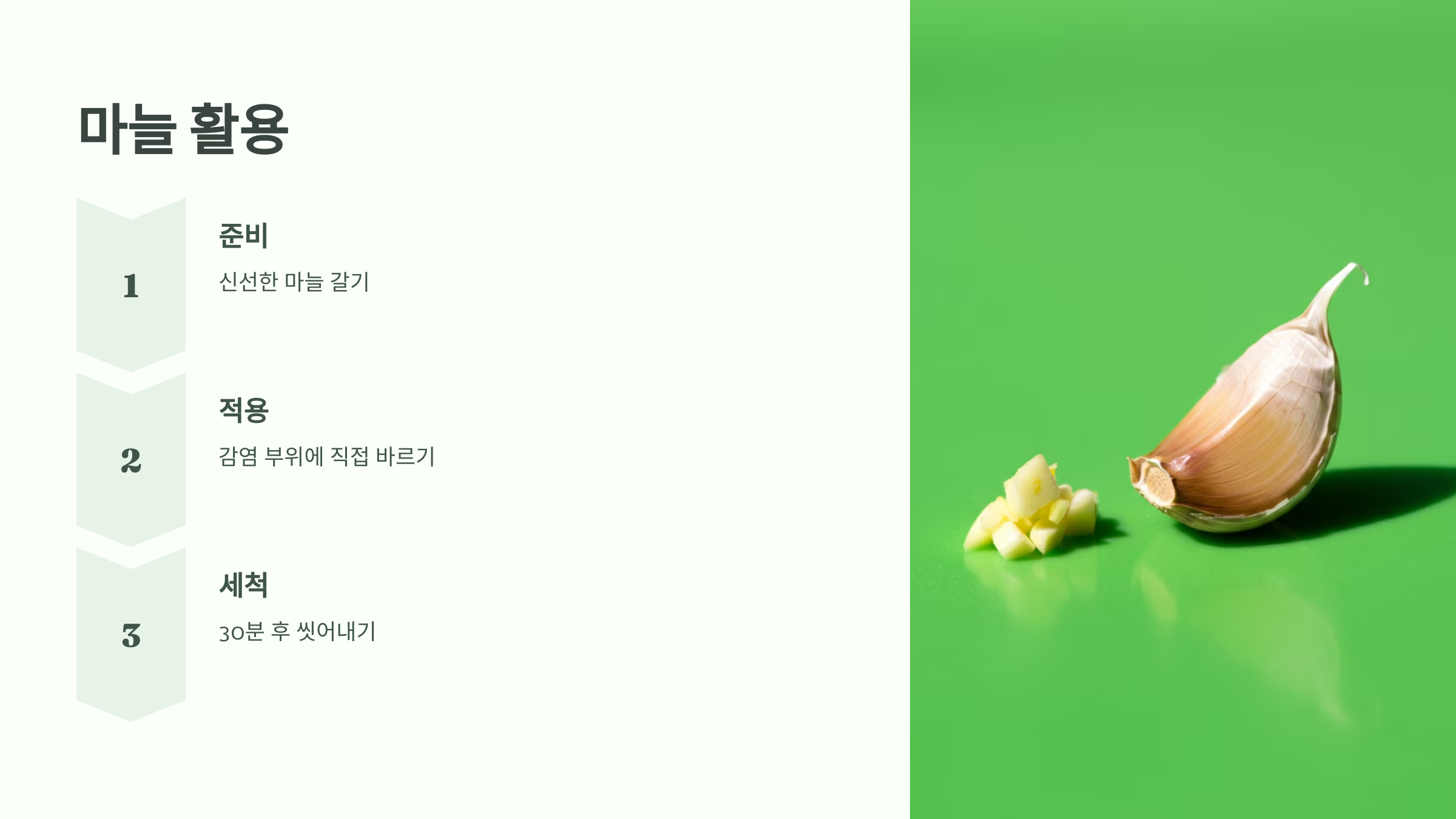 - 신선한 마늘을 갈아 감염된 부위에 직접 발라주세요.