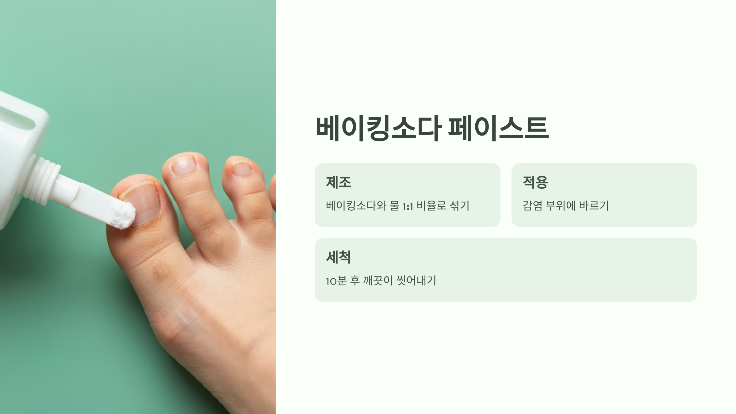 베이킹소다는 항균 효과와 각질 제거 기능이 있어 발톱을 건강하게 유지하는 데 도움이 돼요.