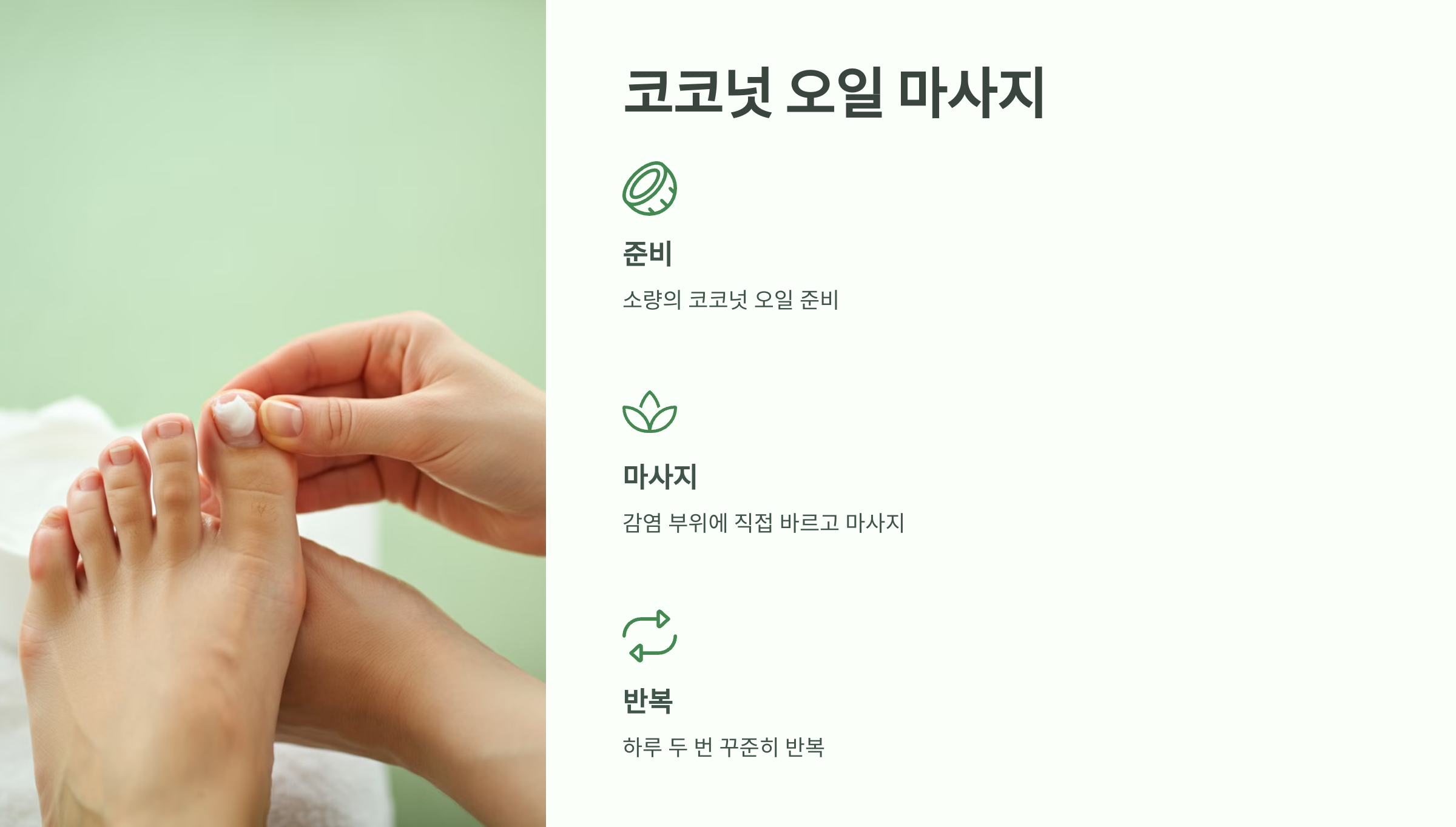 - 소량의 코코넛 오일을 감염된 부위에 직접 바르고 마사지하세요.