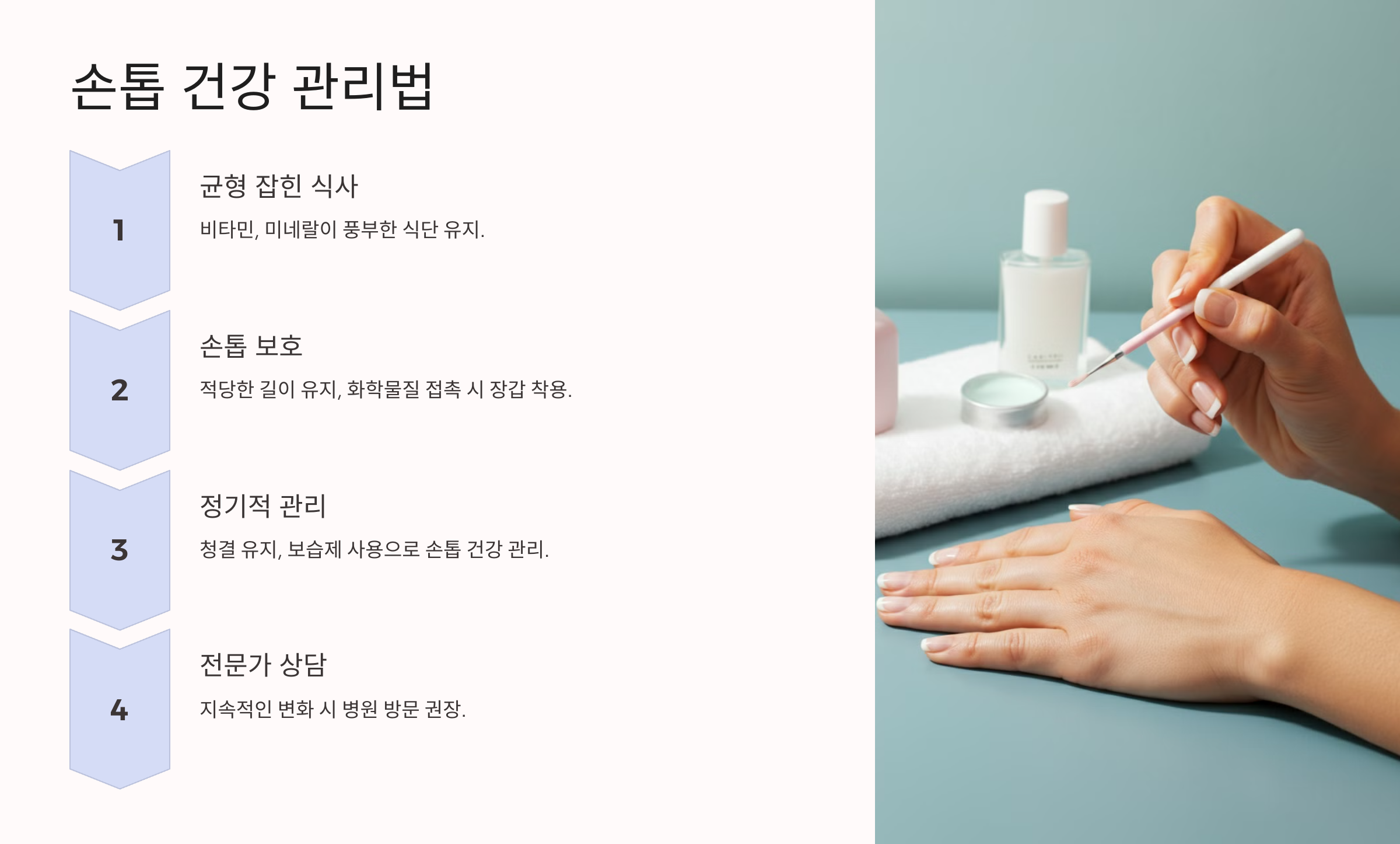 손톱이 건강하게 유지되려면 어떻게 해야 할까요? 간단한 관리 방법 몇 가지를 소개할게요.