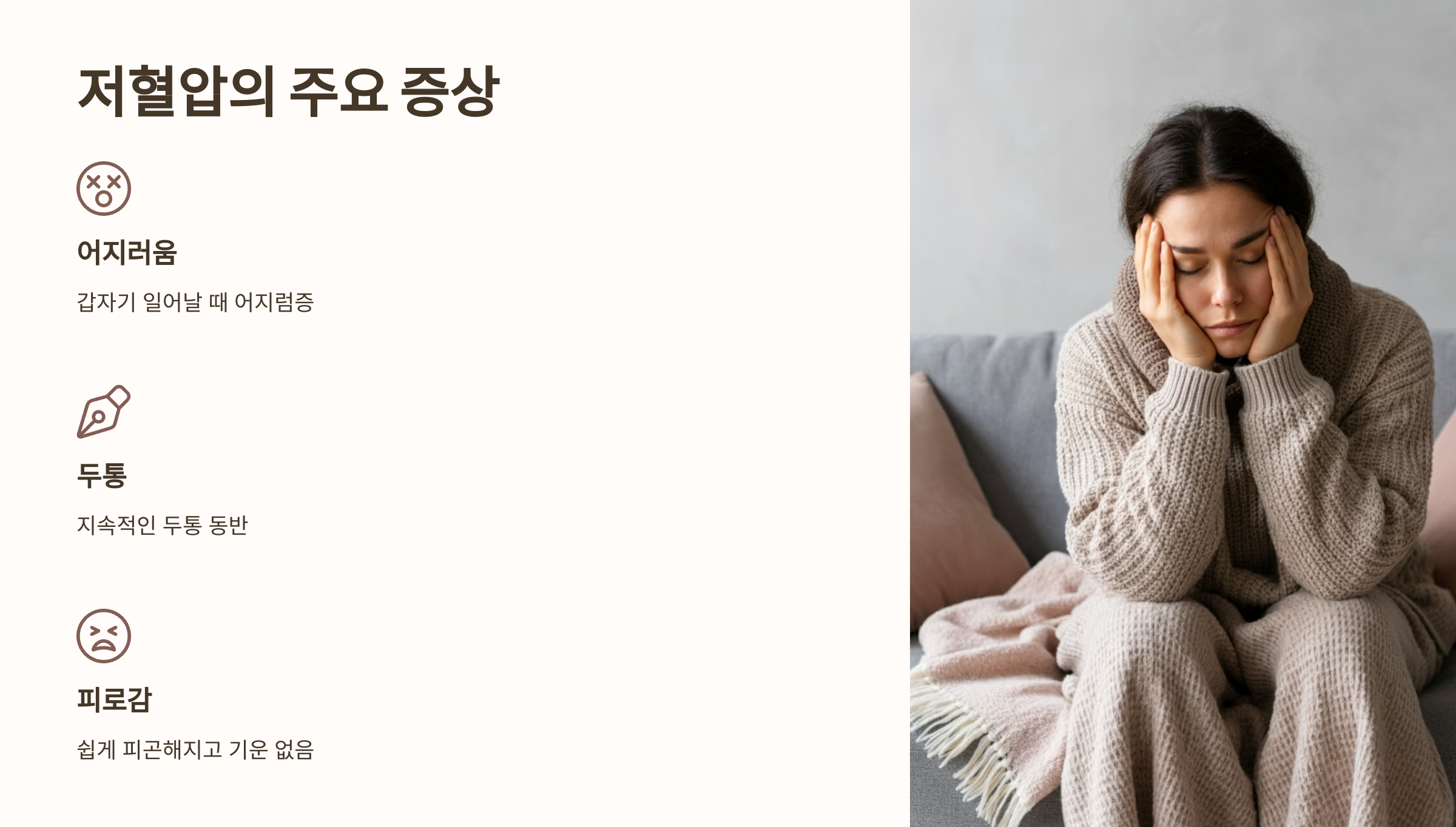 저혈압은 아래와 같은 증상으로 나타날 수 있어요:
