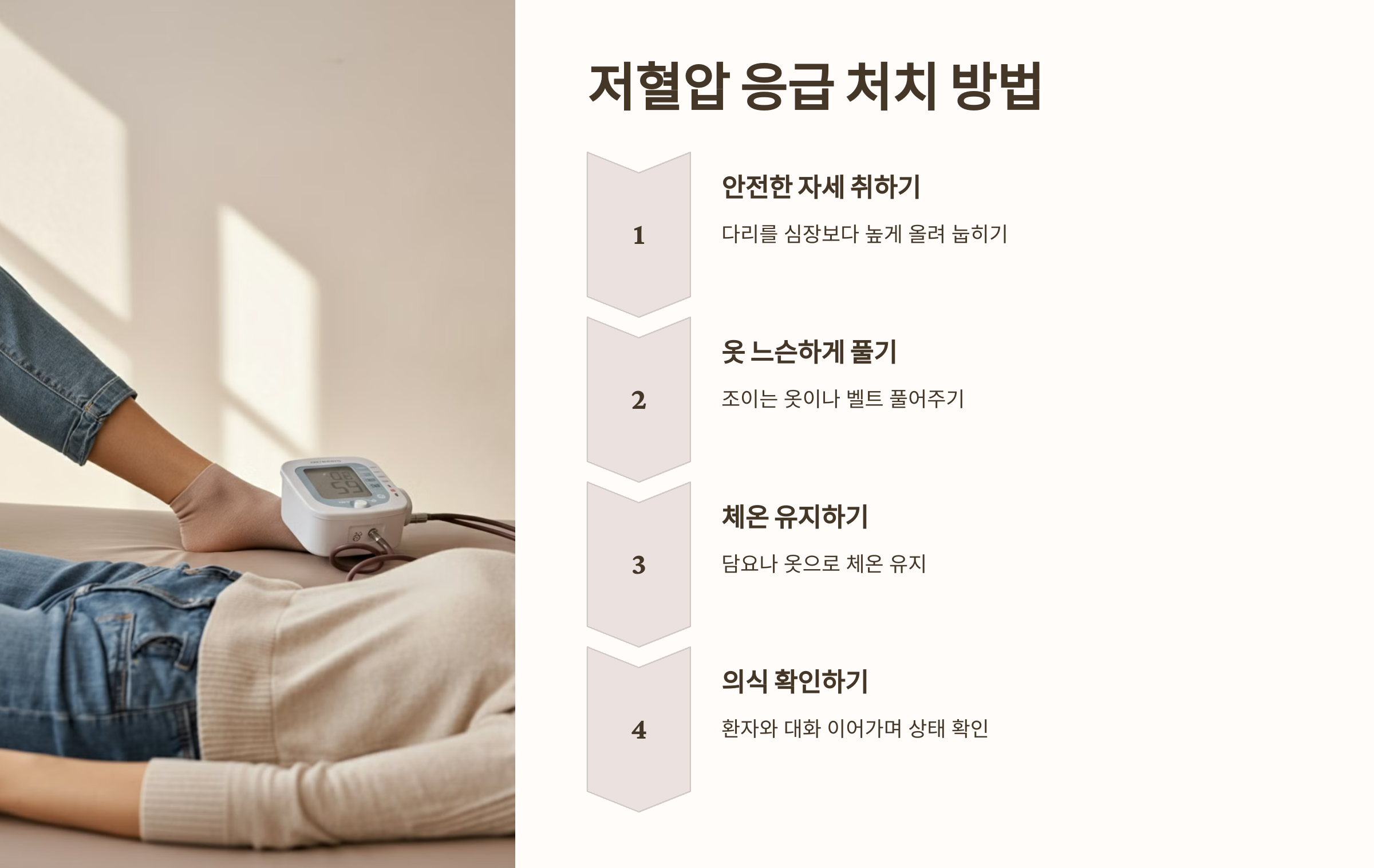 저혈압 증상이 갑작스럽게 나타났을 때는 아래 방법으로 빠르게 대처해 보세요: